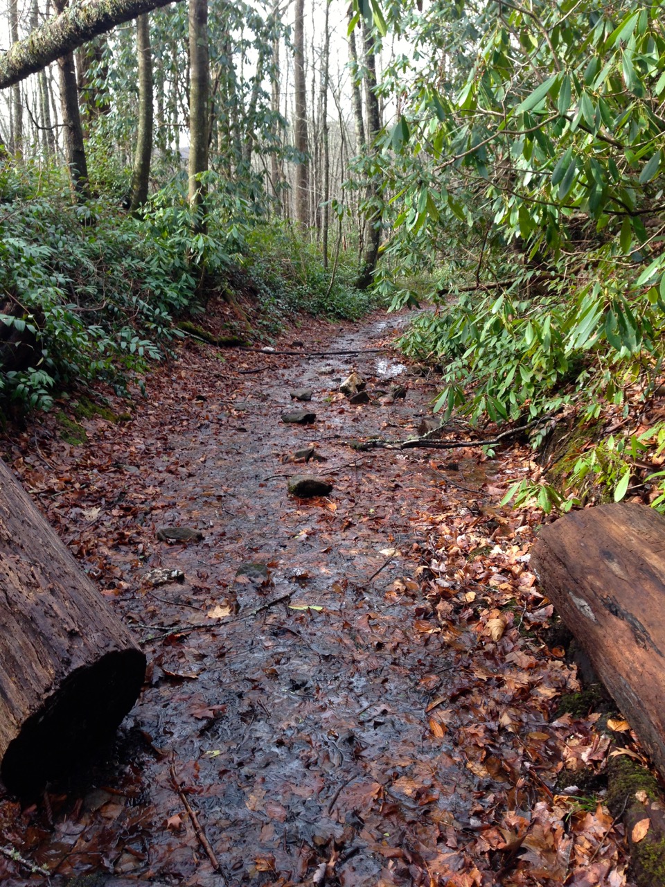 As Hatcher Mountain trail descends from the ridge you get into a rhythm of following the trail out along the edge of the ridge, and then diving back in to a draw between ridges, and then back out to a ridge. Ultimately you come out on the side of the ridge overlooking Abrams Creek and begin to descend on an open, sunny, and rocky trail and then meet up with the Little Bottoms trail.